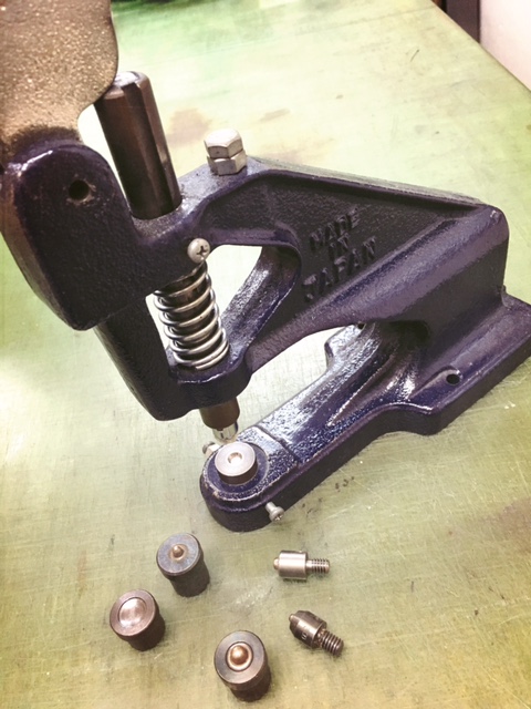 ハンドプレスを使うことで、カシメの足が曲がったりすることもなく、