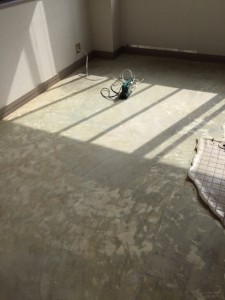 なんとか1部屋と廊下の床シートを張り終えることができました。