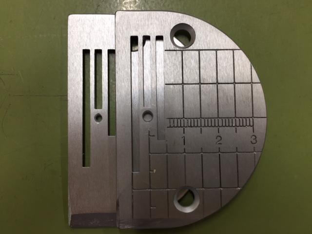 左側が直径1.8mmの穴で右側の目盛りがついたものが直径2.6mmの穴の針板です。