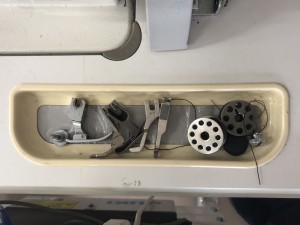 ミシンには必ずこのような小物を入れるスペースがついているのですが、どんな押さえなのか一目でわかりません。