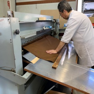 裁断については過去の記述にもありますように、生地を10~20枚重ねて刃型を使って裁断を行います。