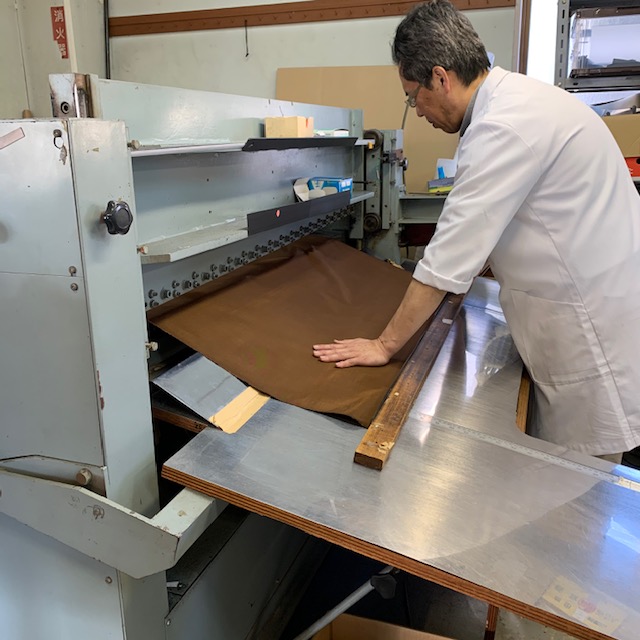 一見簡単な作業ではありますが、20枚重ねる段階で1.2枚短いものがあると寸法通りに刃型で裁断できなくなります。