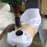 鞄など大きいものほど下作業などの少しのズレって誤魔化しが効くというか、、なんなら気にならなかったりしますが、商品が小さくなればなるほど数ミリのズレが大きく影響してしまって・・・。また、量産を行うとなると、すべてを定規で図りながらなんて事もなかなかできないわけで、各工程を結構感覚的に、だけど正確に組み立てていかないといけません。鞄の生産を行っている時も張り込みなどをする時は正確に、かつスピードを追い求めてやってきましたが、ここではスピードを意識すると正確さの面で少々雑になってしまったり、その後に不具合が生じたりするので、なかなかスピードが上がらないんですけど、正確さとスピードに更に磨きをかけていきたいなと思っています。