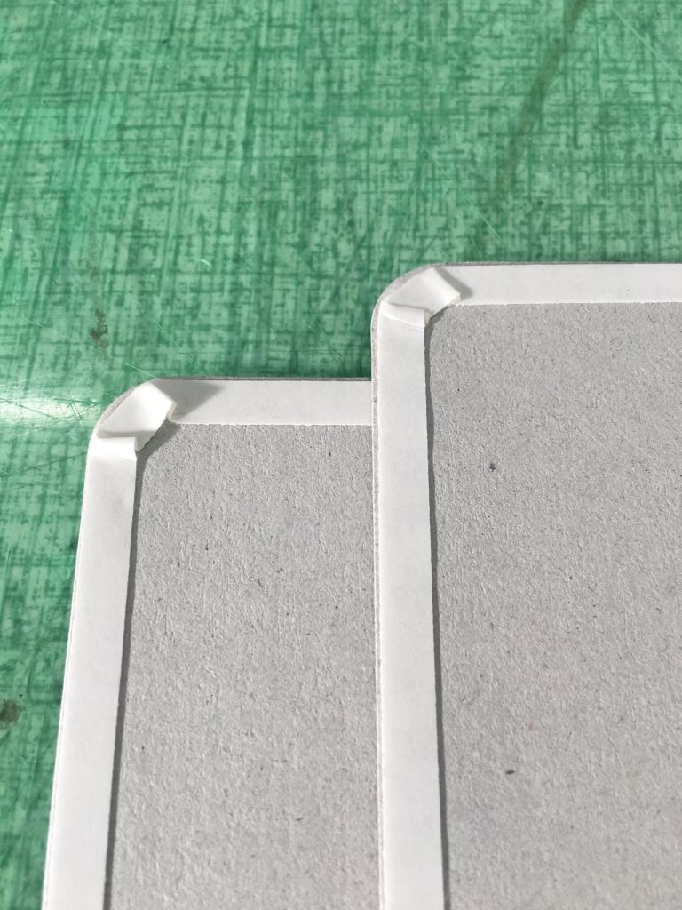 そこで改善策として、両面テープのタック部分の凹凸を叩いて引っかかりをなくすことで、スムーズに貼ることができました。