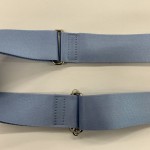 ② 縫えた2本のベルトを組み合わせて、最後にベルト先を革で挟み四角ステッチを入れて完成です。