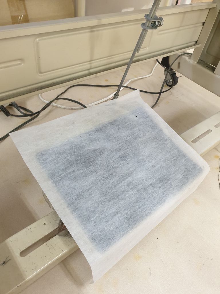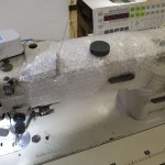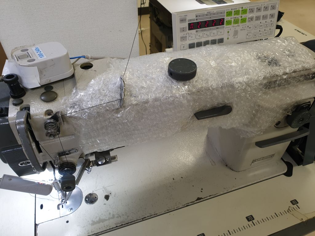 綺麗にしたミシンには量産の商品が汚れない様に少しの工夫をしておきました。