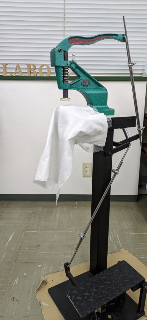 また以前紹介した電動のフットプレスも使っているのですが、それとの違いは目視しながら踏み込めるので打ち損じを減らせることです。