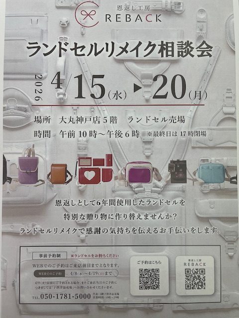 この度REBACKは、大丸神戸店様にて「ランドセルリメイク相談会」というイベントを行います。